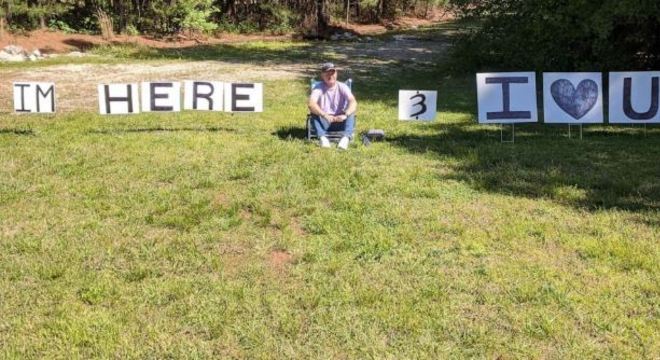 Com ajuda dos filhos, ele colocou letreiros no gramado do Centro de Tratamento de Câncer Bon Secours St. Francis, nos Estados Unidos, e permaneceu no local: "Estou aqui, eu te amo". Em seguida, mandou mensagem pedindo que Diana Cockrell, que trata um câncer de mama, olhasse pela janela.