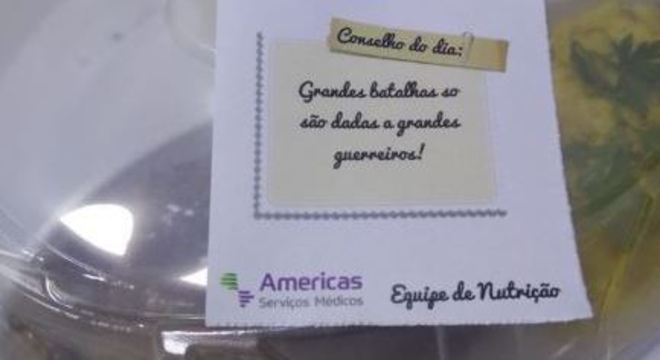 Pacientes diagnosticados com a covid-19 permanecem isolados durante todo o tratamento. Para amenizar a solidão e incentivar a melhora dos doentes, nutricionistas de duas unidades do Hospital Samaritano, no Rio de Janeiro, resolveram enviar bilhetes motivacionais junto de cada refeição.
