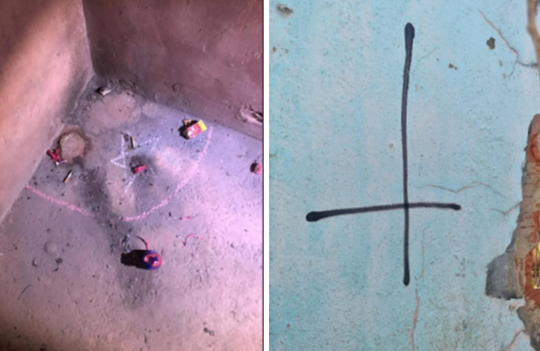 Policiais também fizeram buscas no imóvel em que a mãe de Lázaro morava e encontraram altares e tigelas de barro com dinheiro e cachaça. No local, segundo a Polícia, também havia desenhos de "pentagramas" e uma cruz invertida.